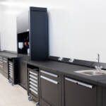 The KEEN SPACE® specialist together with the local dealer, studied the project in every detail, keeping in mind very precise requisites, such as having the fluid distribution integrated in the cabinets without showing any ducting running across the walls.